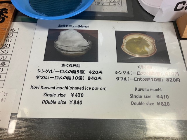 ショーケース内にはお店看板商品の「くるみ餅」各サイズが陳列されているのだが、ここでこたパパは非常に選択に迷ったのだ😅。