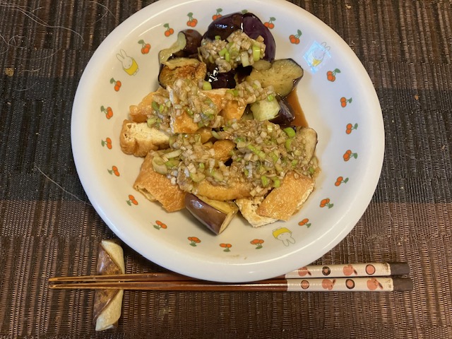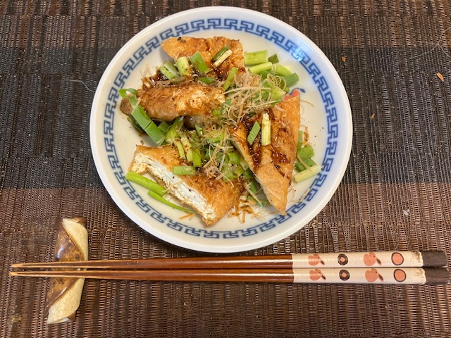 続いて2品目が、茄子を使った塩ネギダレポン酢和えである。この三角油揚はかなり厚みがあり食べ応えもあるのだが、この味だと非常にさっぱりしていて、何枚でも食べられる感じだったなぁ🤤。