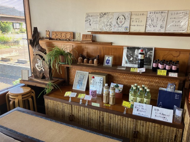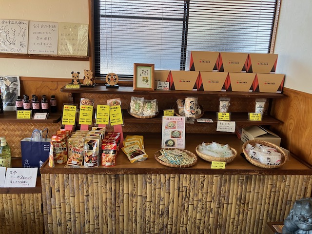 その奥側の棚には、各種調味料やお麩などがずらり。サインも掲示されているのだ🙂。