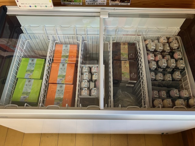 一番奥手の冷凍ショーケース内には、各種大福やチーズケーキなどが陳列されているのだ😄。
