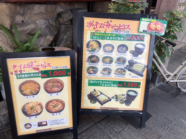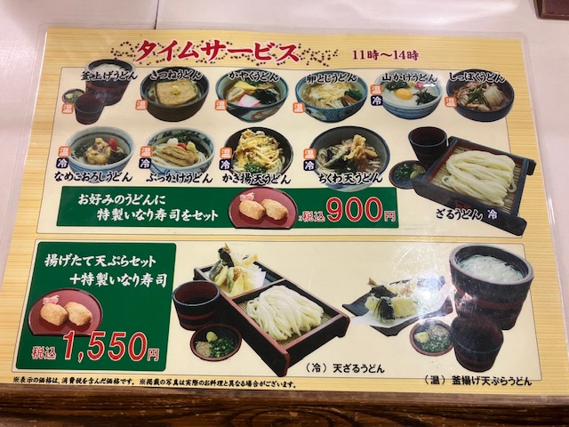 ランチメニュー表。もちろんこのお店発祥である「ざるうどん(いなりセット:900円)」を注文させて頂いたのだ😆。