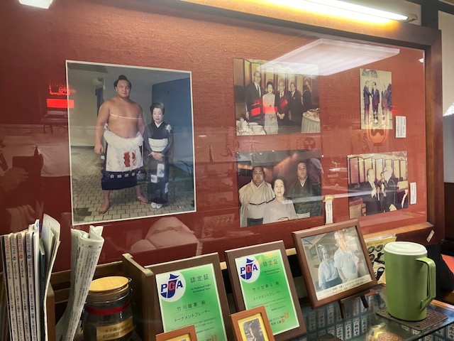 店内中央部壁面には、お相撲さんや政治家等との記念写真が掲示されているのだ😁。