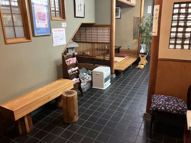 店内左手前には木製ベンチ🙂。