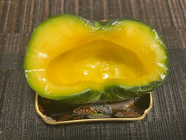 これはもうご飯一択である。薄く切って頂くと、お店で頂いた時と同じくシャキシャキの食感。お店の方も言われていたが、かぼちゃと言うとみんな「ほくほくイメージ」があるので、試食された方はそのギャップにみんな驚かれるそうである😁。