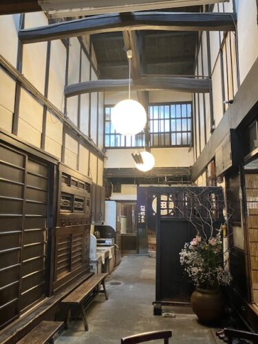 京町屋の建物は奥に細長く続いているのだ。しかし天井が高くて梁がかっこいいなぁ😄。