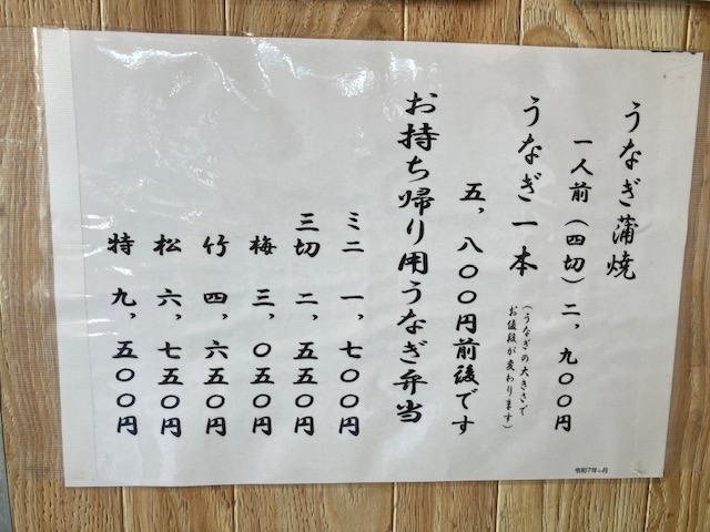 メニュー表。こたパパの鰻選択は基本「竹」クラスなので、今回も「うなぎ弁当(竹:4650円)」を購入させて頂いたのだ😆。