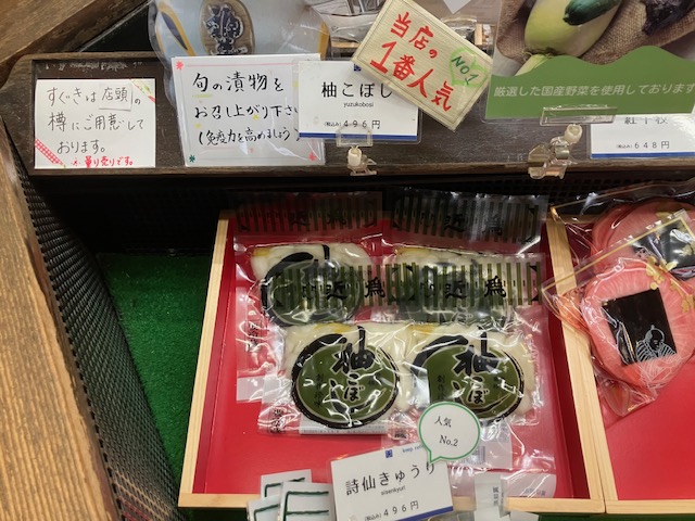 入口右手の壁面陳列台の上にも各種漬物類🙂。