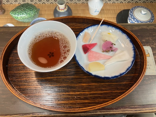 しばらく店内を見学していると、お店の方からお茶とお漬物を提供いただいたのだ。これは以前同じ京都市内にある、川勝総本家さん訪問の時以来だなぁ😁。