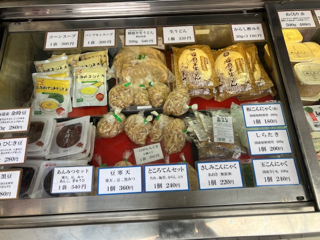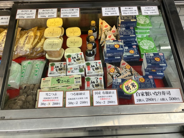 店頭にショーケースが設置されており、様々な豆腐製品がずらりと陳列されているのだ😄。