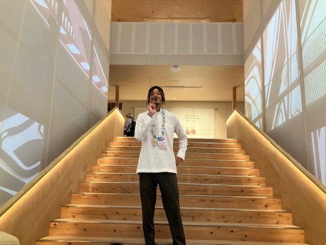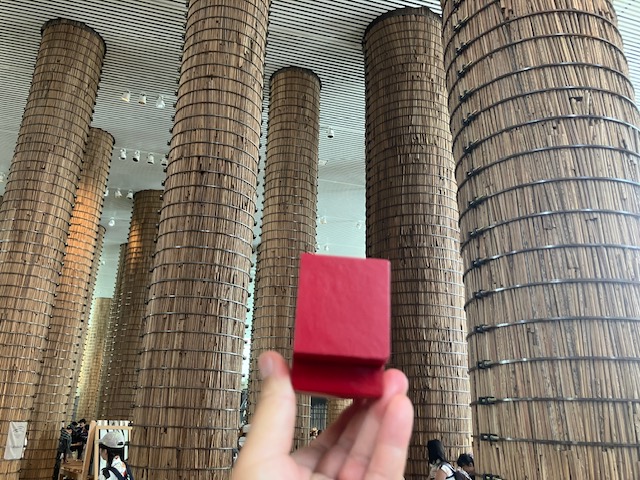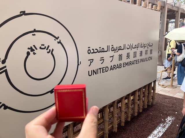続いてもう一つのお目当てのUAE館へ。パビリオン自体は20分ほどの待ちで入場できるのだ。中には大きな柱が林立しているのだ。非常に涼しくて快適な空間である😁。
