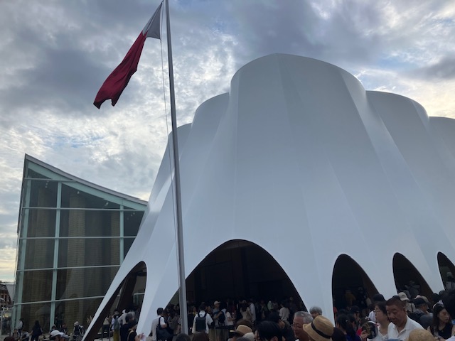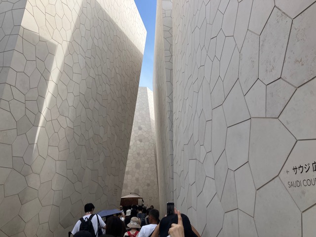 万博会場は広すぎて、とても半日では回り切れない。そこで今回こたパパは事前にターゲットを絞ったのだ。キーワードはずばり「中東」である。ということで、まずはお目当てのサウジアラビア館へ。ところがここでも大行列。何と90分待ちである。ここで活躍したのが、今年の新年一般参賀でも活躍したミニ椅子である😁。