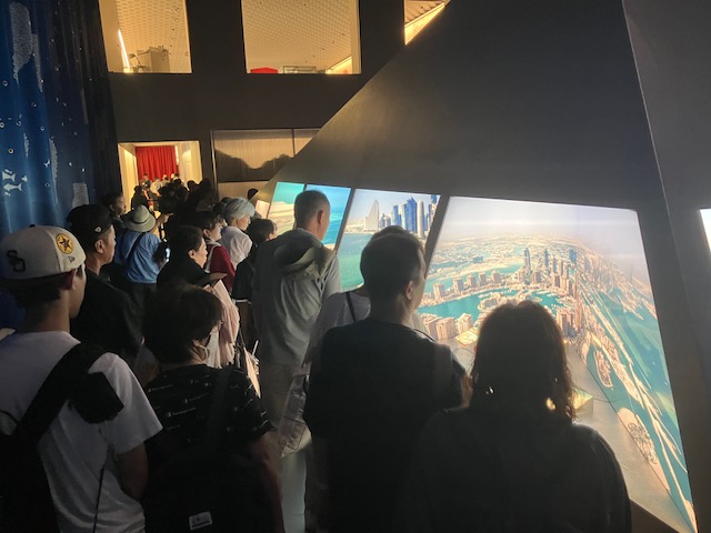 続いて向かったのがカタール館。待ち時間は60分くらい。こちらも映像系がメイン。首都ドーハはかなりの近代的都市なのだ😆。
