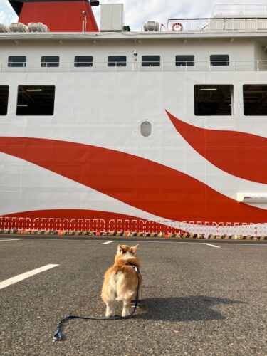 当初のフェリー目的地は新門司港だったのだが、希望日時でのウイズペットルーム確保が困難だったため、予定を大幅に変更し、神戸発大分行きの「さんふらわあ」でやっとウイズペットルームが確保できたのだ😅。