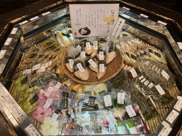 右手の独特の六角形陳列ケース内にも、各種漬物類がずらりと陳列されているのだ😁。