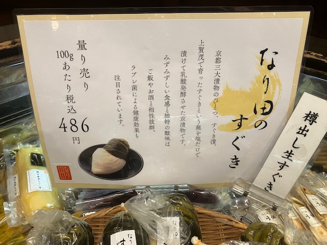 お店の方にお薦めをお伺いしたところ、京都三大漬物の一角を占める「すぐき」という商品とのこと😲。