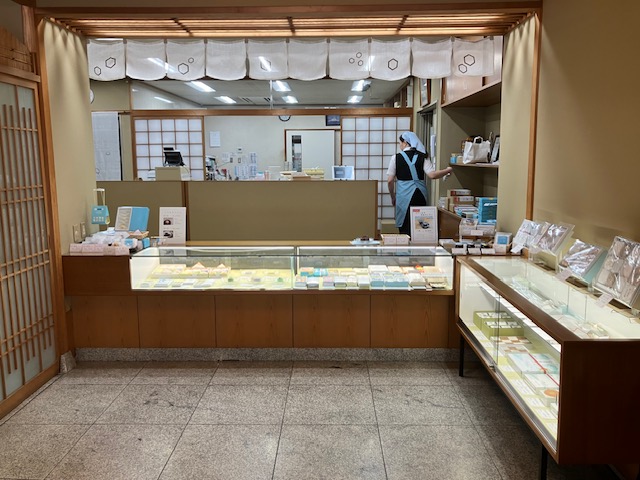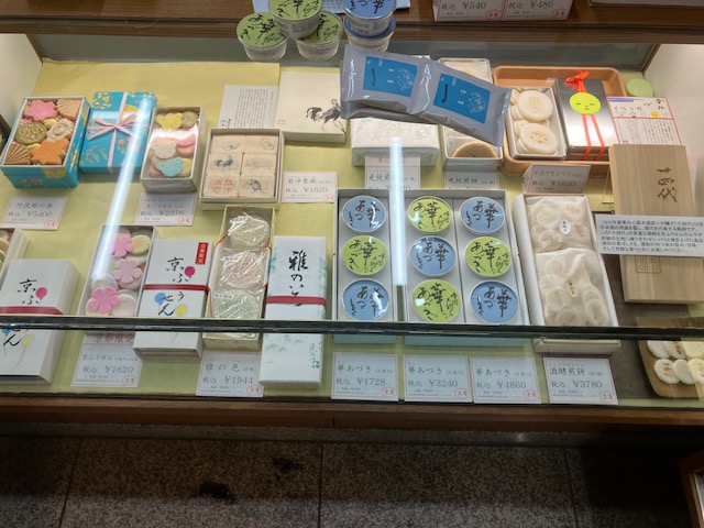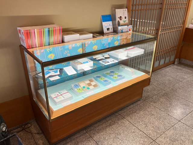 入口左手には小さなショーケースが設置されており、干菓子の詰め合わせなどが陳列されているのだ😄。