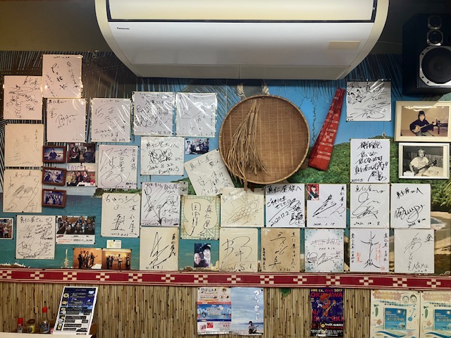 壁面には、沖縄民謡歌詞などが掲示されているのだ🙂。