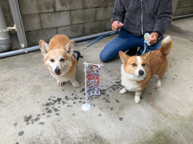 小太郎ミニのぼりの前で記念撮影。ちなみにニコちゃんはほぼ毎日お客様と一緒に海へ出て泳いでいるのだ。お店ホームページには、ニコちゃんの海での様子がわかる写真が多く掲載されているのだ😁。
