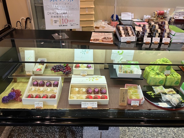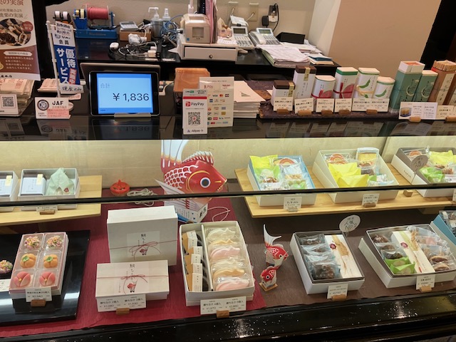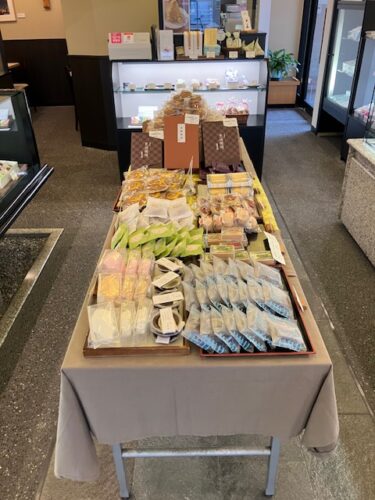 お店の方にお薦めをお伺いしたところ、今の季節であれば「豊年満作」というお菓子とのこと。陳列台の一角には、様々なサイズの「豊年満作」が陳列されているのだ😁。
