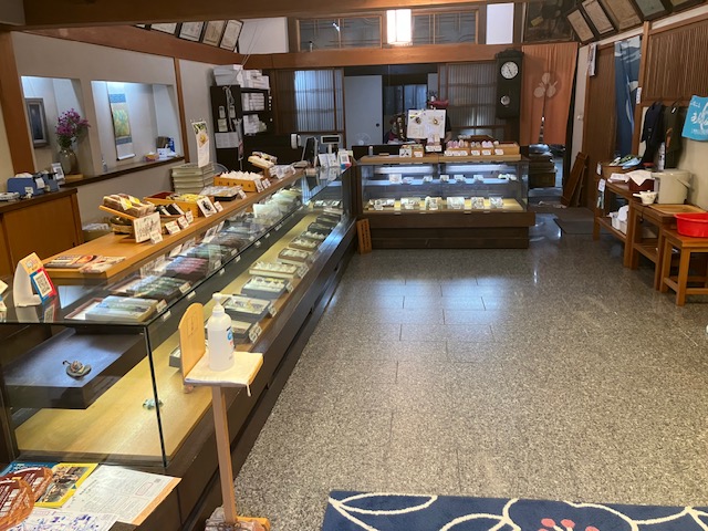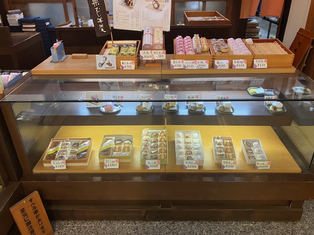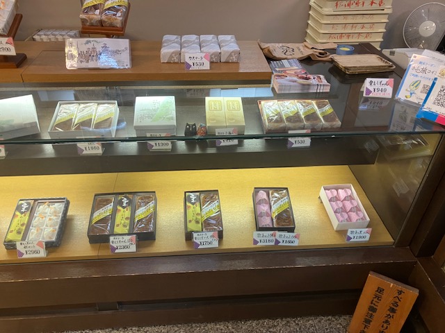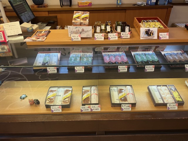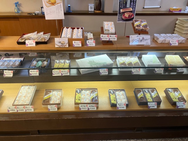 ショーケース内には、カステラや各種羊羹、単品菓子とその詰め合わせなどが陳列されているのだ😁。