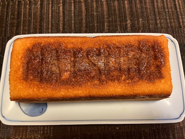カステーラ表面には、ローマ字のお店の名前が焼印されているのだ😄。