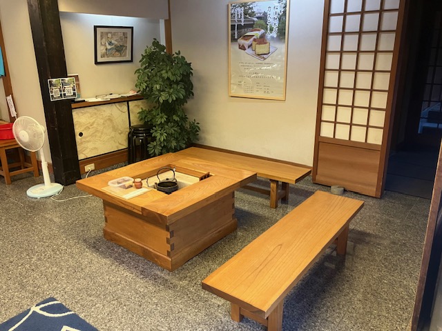 入口右手には広めの休憩スペース。試食があるのが嬉しいなぁ😁。