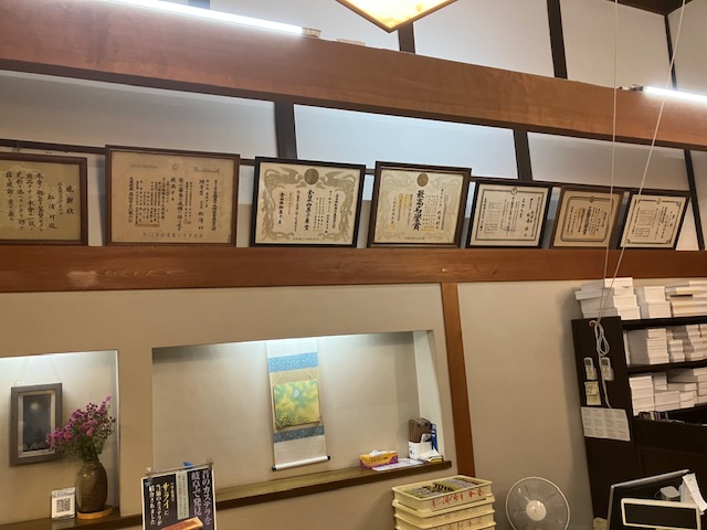 左右壁面上部には過去受賞賞状がずらりと掲示されているのだ😲。