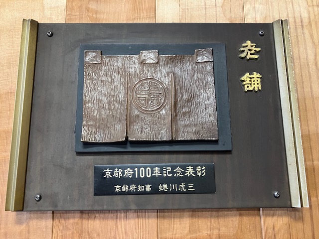 こちらは、京都府からの「100年老舗」表彰盾😄。