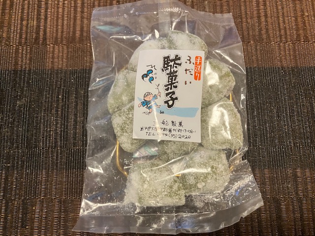 表面には粉糖がびっしり。このお菓子の雰囲気は、以前ご訪問させて頂いた、同じ岩手県内で盛岡駄菓子を販売されている、関口屋菓子舗さんの商品とよく似ている感じがあるなぁ🤔。
