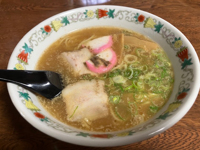 ということで、こたパパは今回「ラーメン(700円)」を注文させて頂いたのだ。しばらくして到着したのがこちら。具は紅白蒲鉾にめんま、チャーシューにネギ。スープは豚骨醤油系で麺は中太ストレートといたってシンプル。食してみると、恐らく地域の方々が都会から帰省した時に食べたくなるいう感じの、優しく懐かしいふるさとの味といった美味しさなのだ🤤。