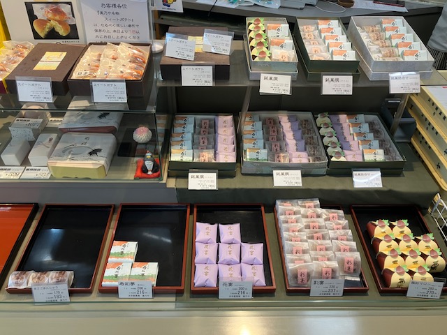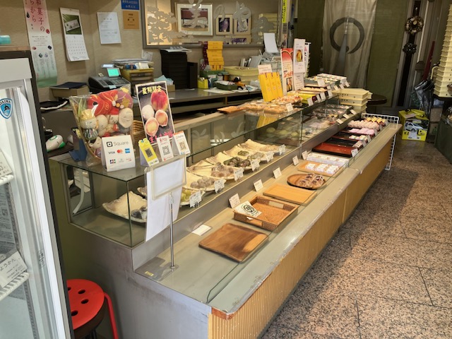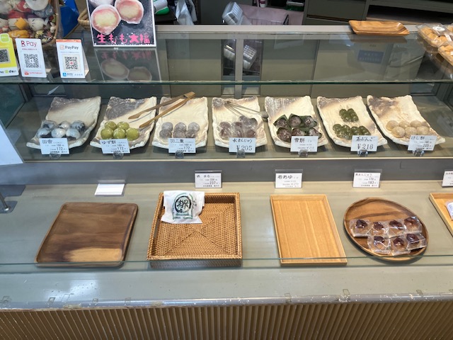 店内左手メインショーケース内には、大福や水まんじゅう、各種おまんじゅうとその詰め合わせなどが陳列されているのだ😁。