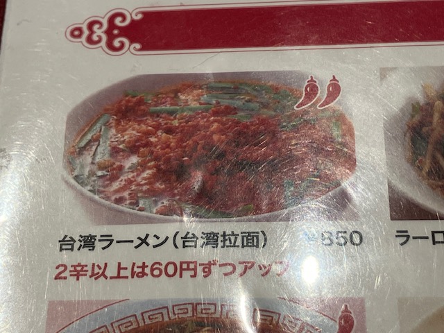 メニュー表。こたパパは今回、もちろん発祥である「台湾ラーメン(850円)」を注文させて頂いたのだ😆。