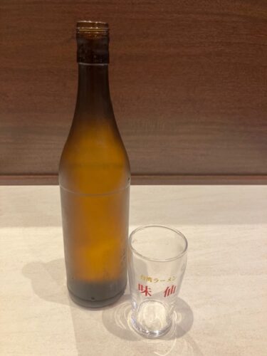 カウンターに着席しまず驚いたのがこれ。大きな瓶に入った水が丸々1本提供されるのだ。「味仙」には辛いメニューが多いので、恐らく水をおかわりする方が多いのがきっかけなんだろうなぁ😲。