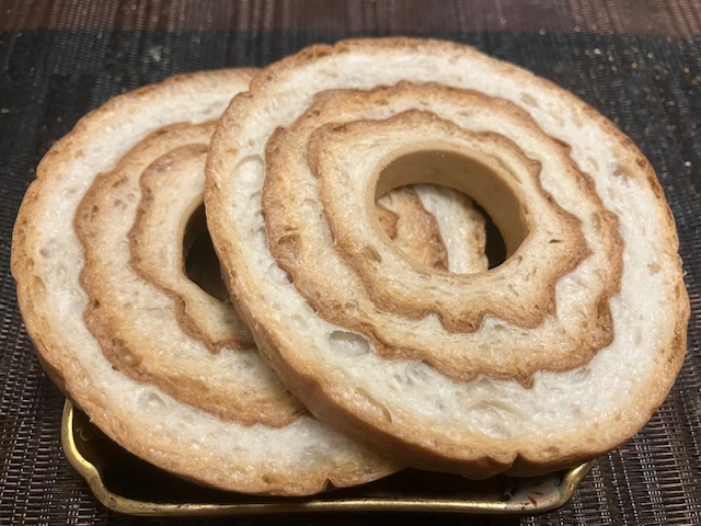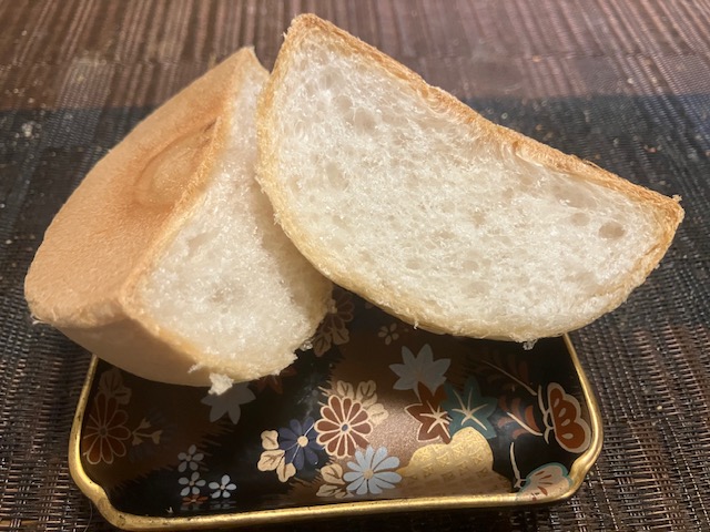 切ってみた感じ。外見はパンのようにも見えるのだが、麩なので非常に軽いのだ。😁。