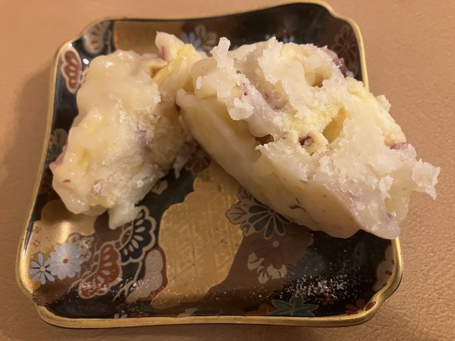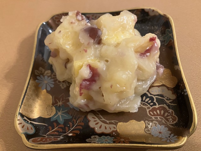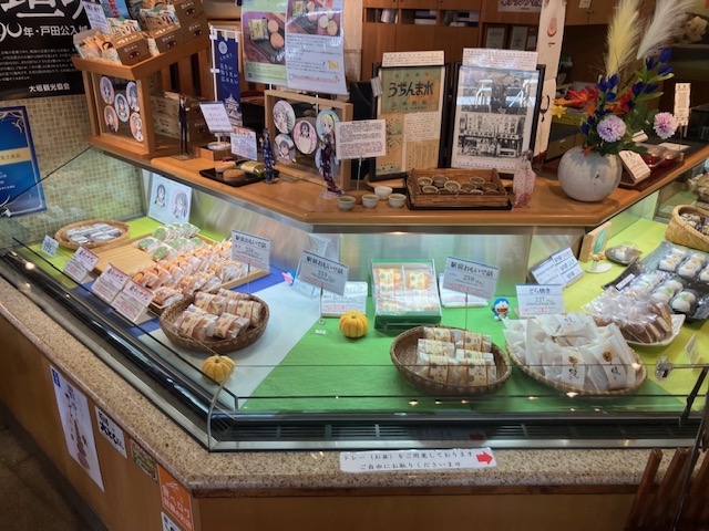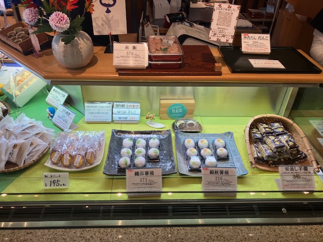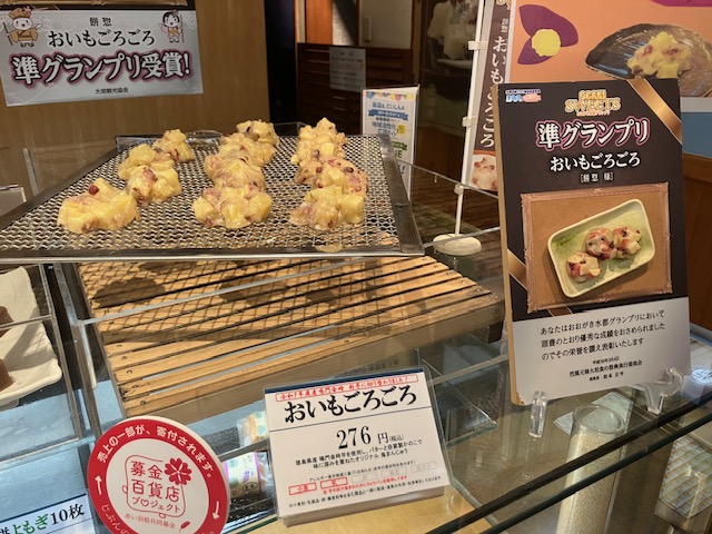 お店の方にお薦めをお伺いしたところ、夏であれば過去菓子博で名誉総裁賞も受賞した「水まんじゅう」だが、今であれば「おおがき水都グランプリ」で「準グランプリ」に輝いた「おいもごろごろ」というお菓子とのこと😃。