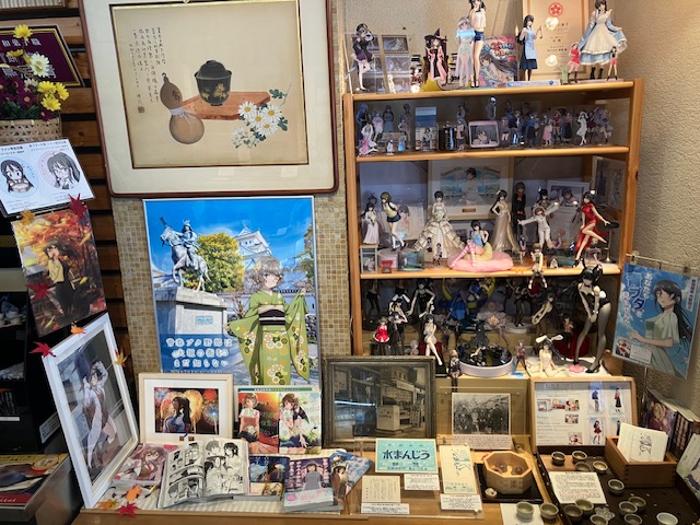 店内右手には、アニメフィギュアやイラスト、本などがずらりと陳列されているのだ。実は大垣市はアニメ先進都市としても有名で、地元出身の漫画家である大今良時先生の映画である「聲の形」の舞台ともなっていているのだ😁。
