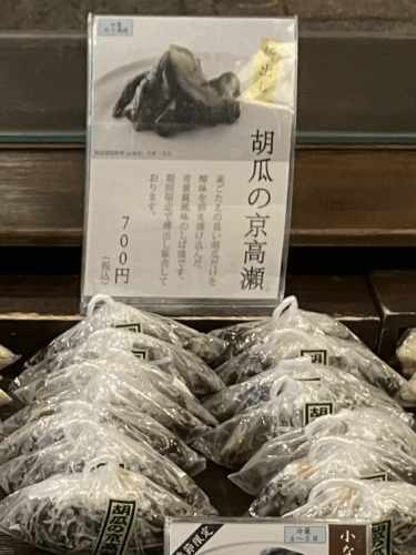 お店の方にお薦めをお伺いすると、本来は冬季販売の「千枚漬」が有名なのだが、暑い夏の時期は期間限定で蔵出し販売の「胡瓜の京高瀬」がお勧めとのこと。ということで今回こたパパは、「胡瓜の京高瀬(700円)」を一つ購入させて頂いたのだ😆。