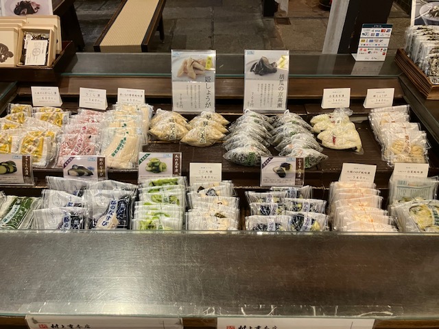 こたパパは鹿児島出身なので、お店に入るとき、お店のれん商標(丸十字)が少し気になったのだが、実は幕末のお店創業当時に京都に来られた島津藩主が、お店のお漬物を気に入って、この商標使用が許可されたという話があるのだ。やはり100年老舗にはいろいろな逸話があって面白いなぁと改めて感じた、こたパパである😉。