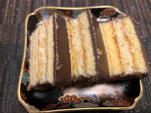 食してみると、3層になっているフワフワのスポンジ生地には杏ジャムが塗られていて、アーモンドのサク感とマッチし、さらに甘すぎないチョコレートがお菓子全体の味をまとめるという、食感も含めた美味しさバランスがかなり計算されているお菓子なのだ🤤。