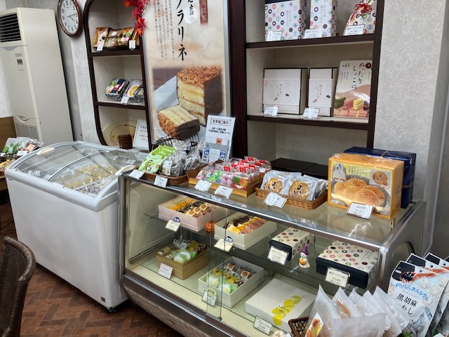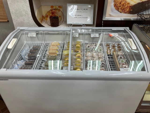 ショーケース内には各種詰め合わせ、冷凍庫内にはブッセやチーズタルト、ショコラなどが陳列されているのだ😁。