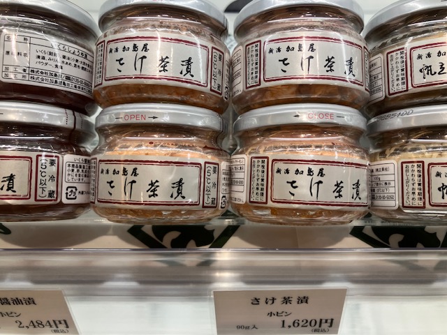 お店の方にお薦めをお伺いさせて頂いたところ、代表商品は何といっても「さけ茶漬」という商品とのこと。店内には様々なサイズの「さけ茶漬」が陳列されているのだ😄。