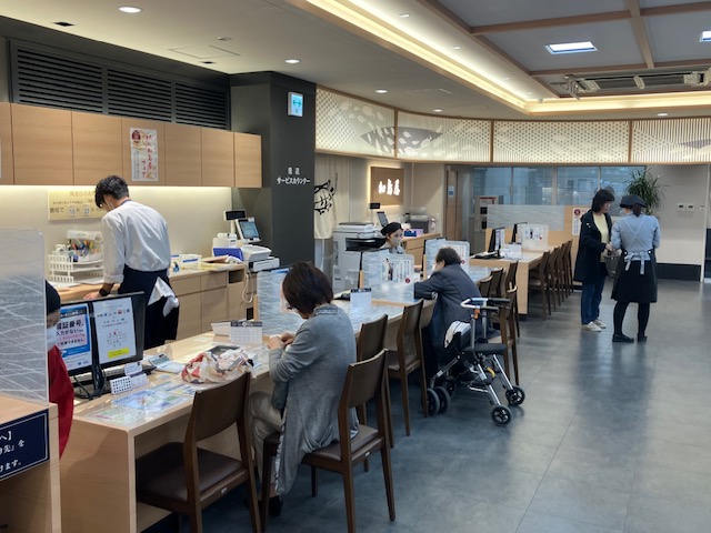 入口側には、休憩用ソファやベンチがずらりと設置されているのだ😁。