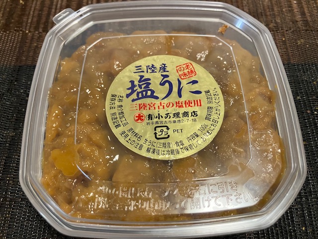 こたパパにとっては、正直かなりびっくりするお値段だったのだが、たとえどんな値段でもお店からのお薦め商品を購入するのが、100年老舗節約グルメ旅基本ルールのひとつなのだ。ということで今回こたパパは、「塩うに(4000円)」を一つ購入させて頂いたのだ😆。