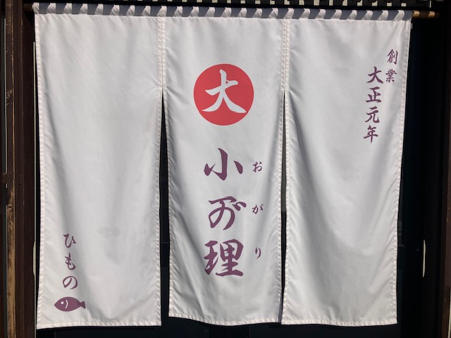 白地に紫文字の暖簾が印象的だなぁ🙂。