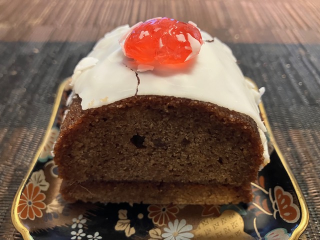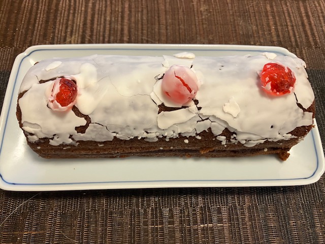 切って見た感じ。食してみると、白い部分はかなり甘く、なかのチョコレートココアパウダーの入ったスポンジはしっとりどっしり感。杏ジャムが入っているのだが、酸味はそれほどなく、最近では珍しい全体的に「しっかり甘い」食べ応えのあるケーキなのだ🤤。