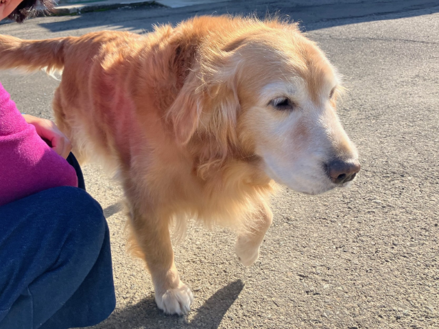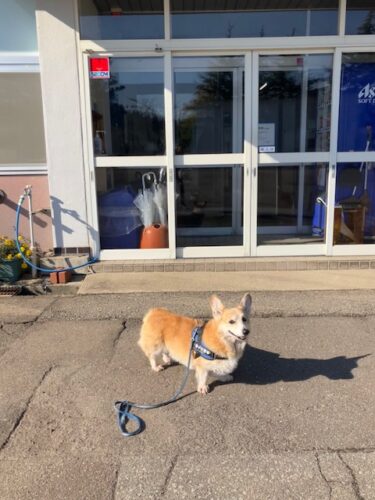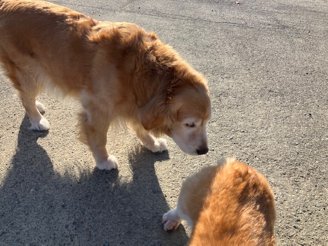 さらに小太郎に会わせてみたいということで、建物裏手にあるご自宅からゴールデンのモカちゃんを連れてきて頂いたのだ😄。