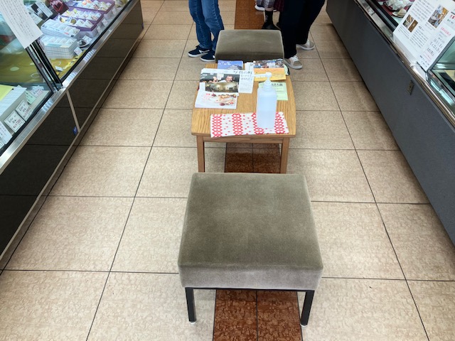 店内配置がユニークで、中央に休憩椅子がセットされ、左右にショーケースが設置されているのだ😲。
