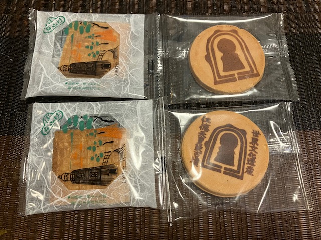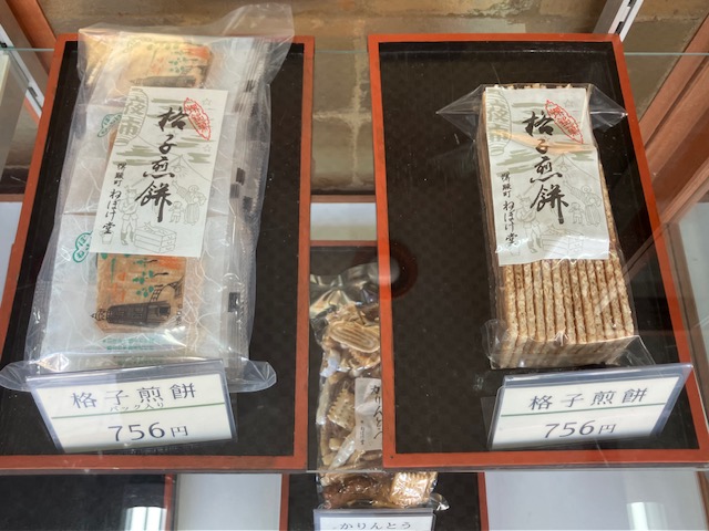 そしてこたパパの全国100年老舗節約グルメ旅の事を知った先代女将さんから、わざわざお店の奥から出来立ての「古墳玉子せんべい」と「格子煎餅」をプレゼントして頂いたのだ。有難いことである😌。
