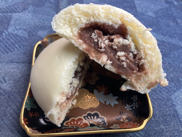切ってみた感じ。まだほんのり温かいなぁ。食してみると、鼻に抜ける糀の良い香り。皮は表面に弾力があるもののふわふわでほんの少し甘酸っぱさが感じられ、中のこしあんは非常に滑らかで甘さ控えめ。やはり酒饅頭は出来立てに限ると思わせるような、王道の美味しさなのだ😁。