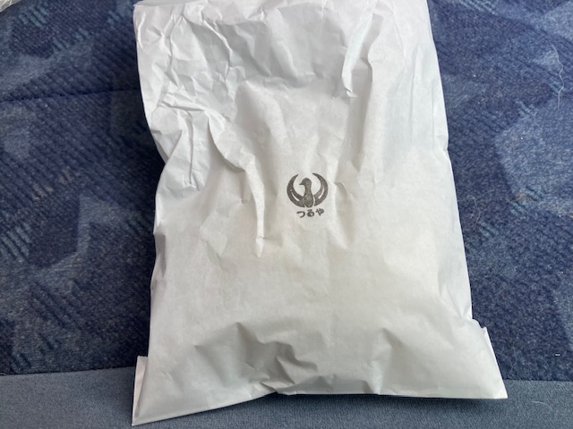 包み紙は店名にちなみ鶴のマークが入っているのだ😄。